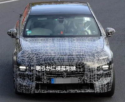 今回問題になっているようなケースでは、実写スクープ写真において、グリル脇のLEDライトが横長の発光形状であることが確認できる。